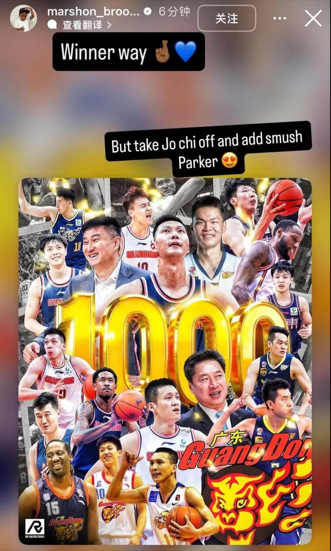 赛后,前广东功勋小外援,曾经帮助广东队拿到3连冠的马尚,也是第一时间在社媒上转发分享了庆祝广东男篮成为首支千胜球队海报,马尚的这波举动,引来无数广东球迷的好评。