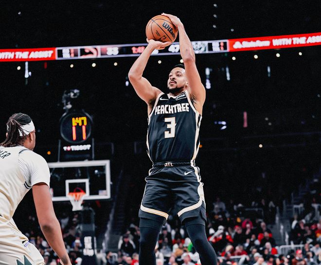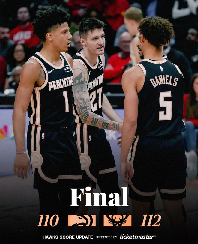 杰伦-约翰逊是新鹰王,他此役40分钟,24中11,三分6中3,罚球6中3,拿到28分16篮板6助攻1盖帽,命中率45.8%,三分命中率50%,但球队却没有给他最后一投设置战术。