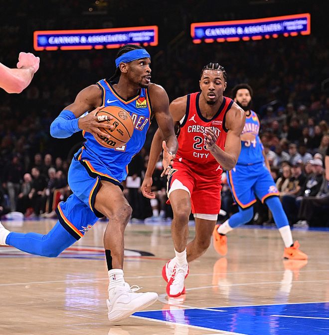 雷霆主场迎战鹈鹕,雷霆少了杰伦、哈滕、卡鲁索、米切尔、华莱士,鹈鹕少了穆雷,上半场比赛鹈鹕咬住比分,半场战罢雷霆只领先2分,下半场雷霆展现优势,一度领先17分,最终雷霆104-95击败鹈鹕。亚历山大22中8得到29分6板4助、切特14中8得到20分14板3助5帽,以赛亚乔11中6(三分10中5)得到17分3板3助,鹈鹕方面锡安11中8得到21分11板2助、萨迪克贝16中4得到16分13板5助2断。