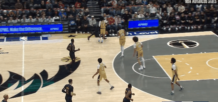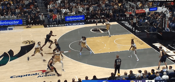 图2,卢卡推反击,萨尔三分线等他,卢卡单手击地横传,艾顿顺下扣篮。