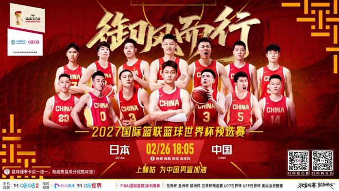 2027国际篮联篮球世预赛,2月26日18:05,锁定咪咕视频独家看中国男篮大战日本!