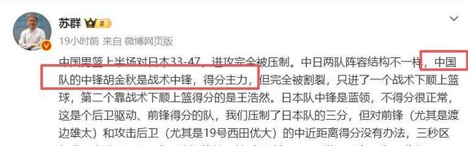 中国男篮大逆转日本,苏群一针见血,诞生3个不可思议2个不争事实