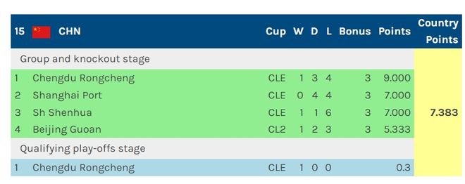 亚冠技术积分出炉,中超不及一众东南亚联赛球队